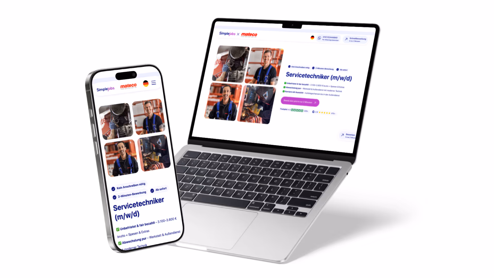 Vereinbaren Sie jetzt Ihr kostenloses Strategiegespräch und erleben Sie Simplejobs live. Unsere Experten zeigen Ihnen, wie wir als spezialisierte Blue-Collar-Recruiting-Einheit Ihr Team entlasten und schnell passende Fachkräfte gewinnen.