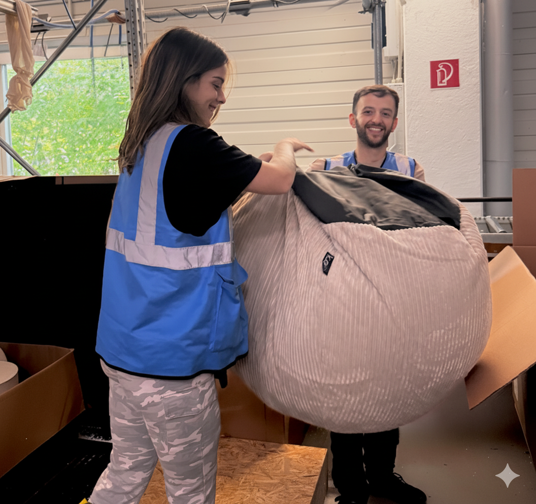 - Ca. 70 Sitzsäcke pro Stunde – körperlich, aber mit klaren Abläufen