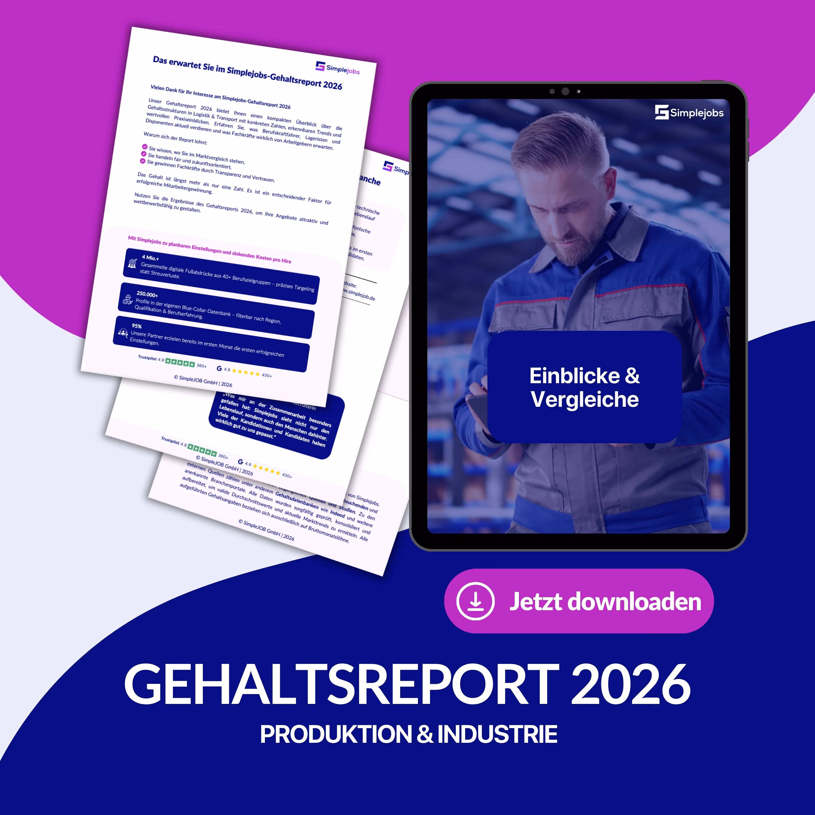 Der Gehaltsreport 2026 für Produktion & Industrie von Simplejobs bietet einen umfassenden Überblick über aktuelle Gehaltsstrukturen in der Industrie- und Produktionsbranche, typische Gehaltsspannen sowie Entwicklungen im Arbeitsmarkt. Die Analyse basiert auf internen Daten von über 250.000 registrierten Jobsuchenden, ergänzt durch Daten aus anerkannten Gehaltsdatenbanken und Branchenstudien.
